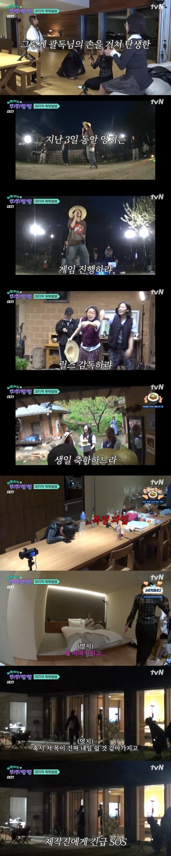 이날 방송에서 이영지는 지난 여행 기간 동안 에너지를 쏟았던 탓에 목소리를 잃었다. 이영지는 그동안 릴스 감독 역할부터 게임 진행, 생일 파티까지 다양한 역할을 해내며 '뛰뛰빵빵'의 최고 괄괄이로서의 모습을 선보였다.
