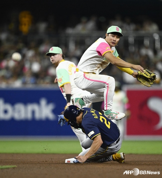 김하성은 22일(한국시간) 미국 캘리포니아주 샌디에이고 펫코파크에서 열린 밀워키 브루어스와 2024 미국프로야구 메이저리그(MLB) 홈경기에 8번 타자 유격수로 선발 출전해 4타수 1안타를 기록했다.
