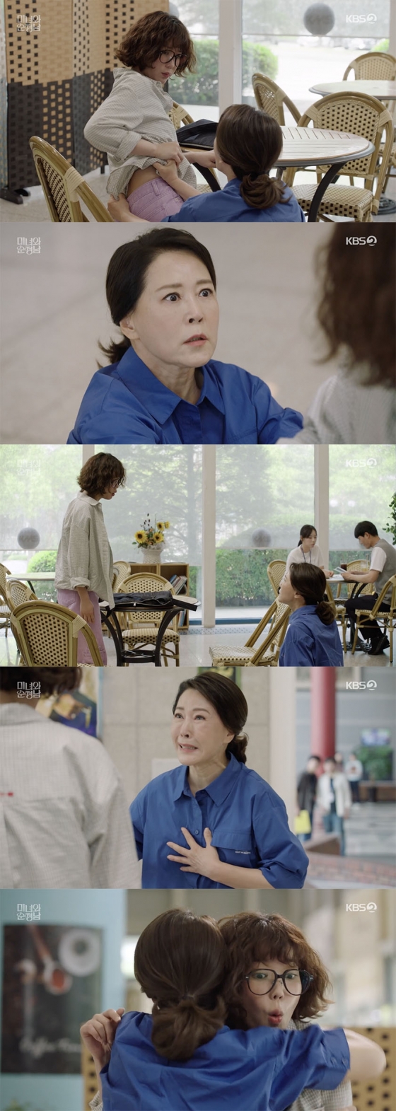 22일 오후 방송된 KBS 2TV 일일드라마 '미녀와 순정남'에서는 백미자(차화연 분)가 김지영(임수향 분)의 등에서 박도라(임수향 분)과 같은 세 개의 점을 발견한 장면이 그려졌다.
