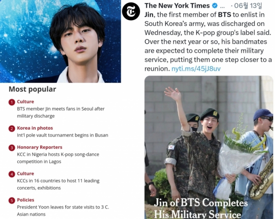 또한 미국 뉴욕 타임스, 영국 로이터, 프랑스 AFP 통신, 일본 NHK 등 주요 외신들도 진의 전역 및 '2024 페스타'소식을 전 하며 다음 행보에 큰 기대감을 모으고 있다는 점도 언급했다.