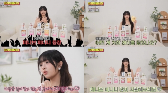 이날 레이는 "사실 최근에 새로운 캐릭터가 생겼다"라며 아이브 멤버들을 똑 닮은 굿즈를 공개했다. 오픈런과 품절 소식을 접한 레이는 구독자들을 위해 '미니브 미니니(minive minini)'에 대해 전격 리뷰에 나섰다. '안지니'를 보며 "언니가 작아졌어. 제 손바닥만 해"라며 미니 버전과 큰 버전을 동시에 소개했다. '체리니'를 본 레이는 "진짜 원영이 닮았다. 내가 산다면 체리니 살 것 같다"라며 구매 1순위로 선택했다.