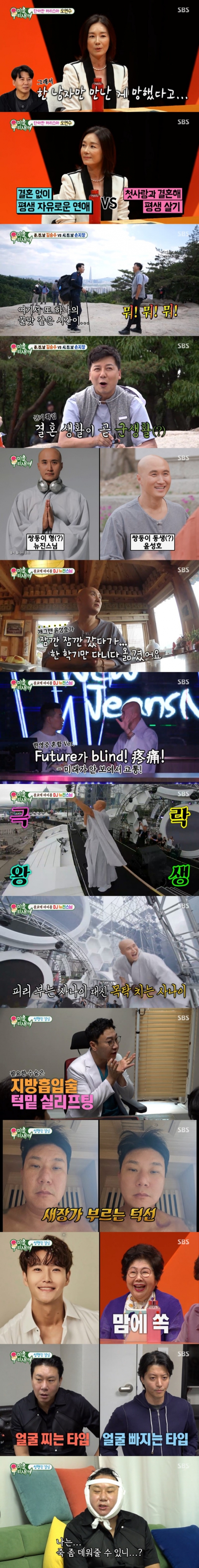 이날 스튜디오에는 7년 만에 배우 오연수가 스페셜 MC로 출연했다. '자기 관리의 끝판왕'인 오연수는 "집에서도 썬크림을 바르고, 겨울에 손지창 씨가 춥다고 해도 히터를 틀지 않는다"라며 변함없는 외모 유지 비결을 소개했다. 오연수는 "너무 일만 열심히 해서 다른 남자를 만날 새가 없었다. 그래서 첫사랑 한 남자만 만나고 결혼한 걸 망했다고 했다"라며, "두 아들들에게 결혼을 권장하지 않는다. 여러 사람을 많이 만나고 다양한 연애를 했으면 한다"라고 소신 발언을 던졌다.