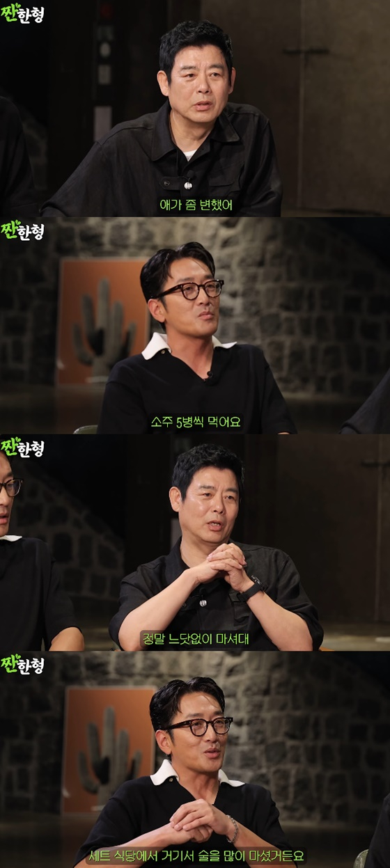 하정우는 "우리가 세트장에서 촬영해서 세트장 식당에서 술을 많이 마셨다"며 "밤에는 거기가 실내 포장마차로 바뀐다"고 설명했다.