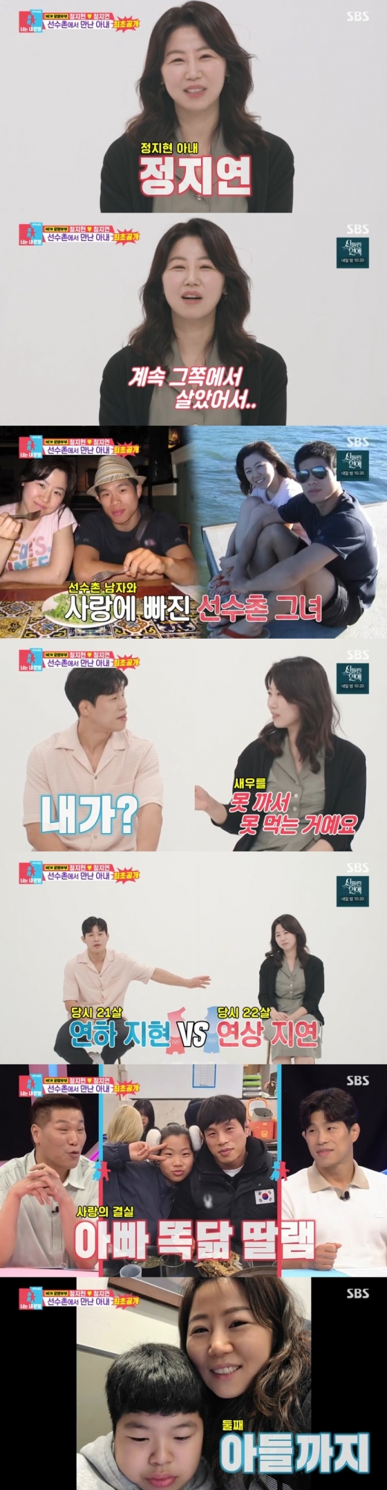 정지현은 태릉에서 태어나 계속 태릉에서 살았다는 아내 정지연을 소개했다. 정지현은 "지인 결혼식에서 만났다. 새우를 까주더라. 그런 플러팅에 당했다"라고 회상했다.