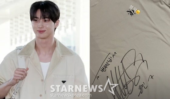 공개된 사진 속에는 손흥민이 론칭한 브랜드 티셔츠에 그의 친필 사인이 담겨 있었다. 손흥민은 '변우석님'이라고 적었다. 평소 변우석은 손흥민이 소속된 토트넘 홋스퍼의 팬으로 알려진 가운데 성덕을 인증했다.