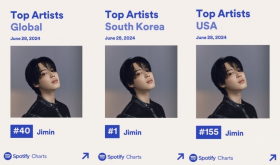 이와 함께 지민은 미국 스포티파이 일간 톱 아티스트 차트에서 155위에 차트인하며 K팝 최고 순위이자 유일한 K팝 솔로 가수로서 한국어 곡으로 팝의 본고장인 미국에서 K팝의 위상을 높였다.