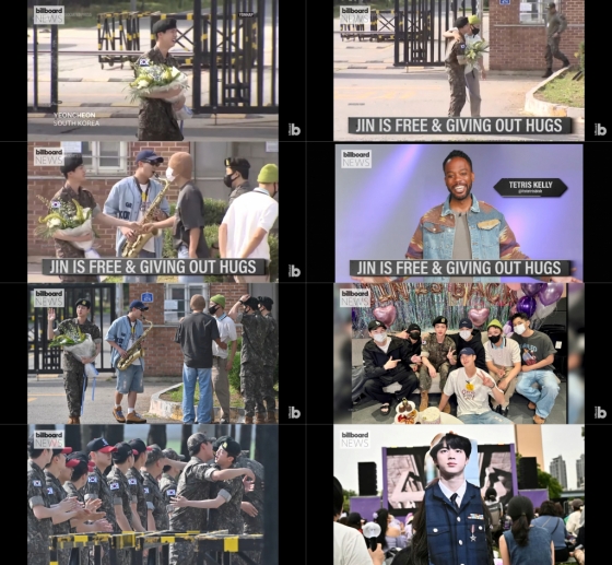 미국 빌보드(Billboard) 또한 뉴스를 통해 진의 전역 모습을 전했다. 빌보드 호스트이자 앵커 테트리스 켈리(Tetris Kelly)는 "방탄소년단의 맏형 진이 한국의 군 복무를 마치고 전역했습니다. 오늘 동료 멤버들의 따뜻한 환영을 받았는데요. 팬들과의 만남 또한 예정되어 있습니다. 진, 저도 안아주세요!"라고 말했다.