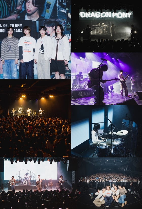 드래곤포니(안태규, 편성현, 권세혁, 고강훈)는 지난 29일 서울 마포구 무신사 개러지에서 단독 공연 'Dragon Pony Final Debut Mission: 500'(이하 '500')을 개최했다. 전석 매진 속에 공연장은 국내는 물론 해외 팬들로 빈틈 없이 꽉 차 드래곤포니를 향한 남다른 인기를 실감케 했다.