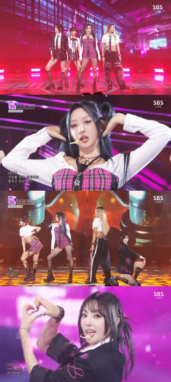 하이키(서이, 리이나, 휘서, 옐)는 30일 오후 방송된 SBS '인기가요'에 출연해 미니 3집 'LOVE or HATE(러브 오어 헤이트)'의 타이틀곡 '뜨거워지자(Let It Burn)' 무대를 선사했다.