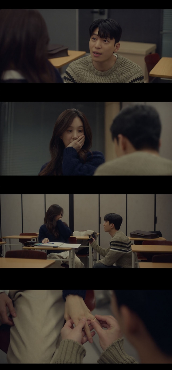 서혜진은 고개를 끄덕였고, 이준호는 그런 서혜진의 손가락에 반지를 끼워줬다. 그는 "질문 더 없으면 수업 끝내도 돼?"라고 한 후 빈 강의실에서 서로를 향한 깊은 사랑을 확인했다.