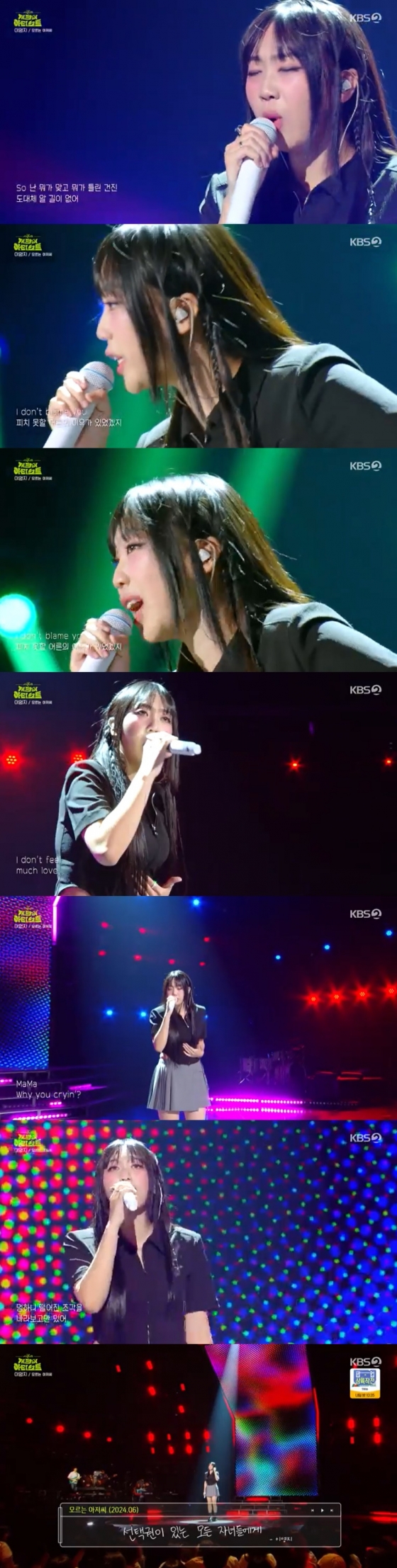 이영지는 '모르는 아저씨' 무대를 선보이며 '선택권이 있는 모든 자녀들에게'라는 메시지를 자막으로 전했다.
