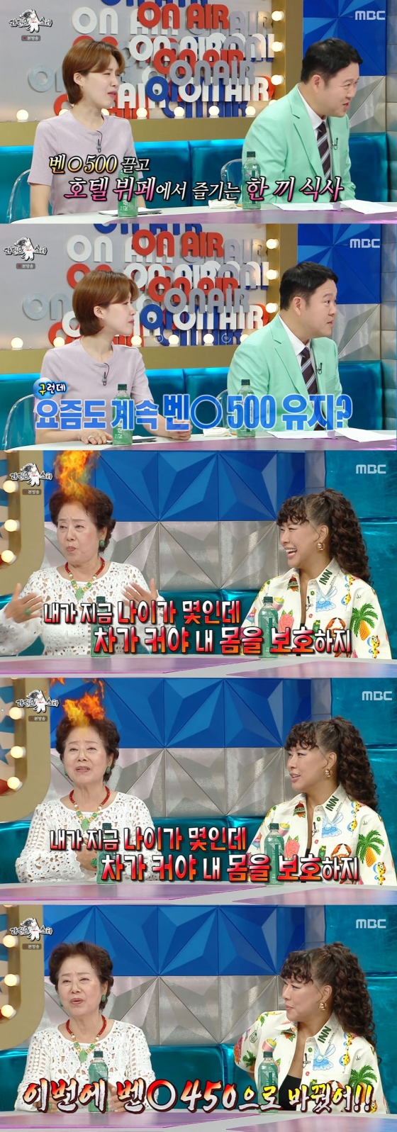 이날 MC 김구라는 "선생님이 벤츠 500 끌고 호텔 뷔페 가서 식사하신다"라고 말문을 열며 선우용녀의 근황에 대해 언급했다. 그러면서 "요즘도 벤츠 500을 타고 다니세요?"라고 질문했다.