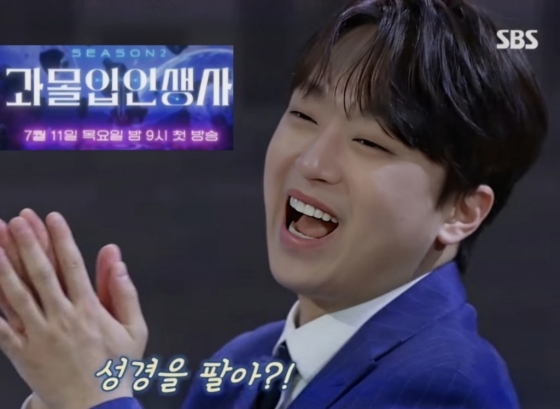 황금 스니커즈를 시작으로 자신의 머그샷이 박힌 머그컵에 심지어는 성경까지 파는 트럼프의 기괴한 모습을 본 이찬원은 "성경을 팔아?!"라며 손뼉을 치며 실소를 해 호기심을 유발했다.