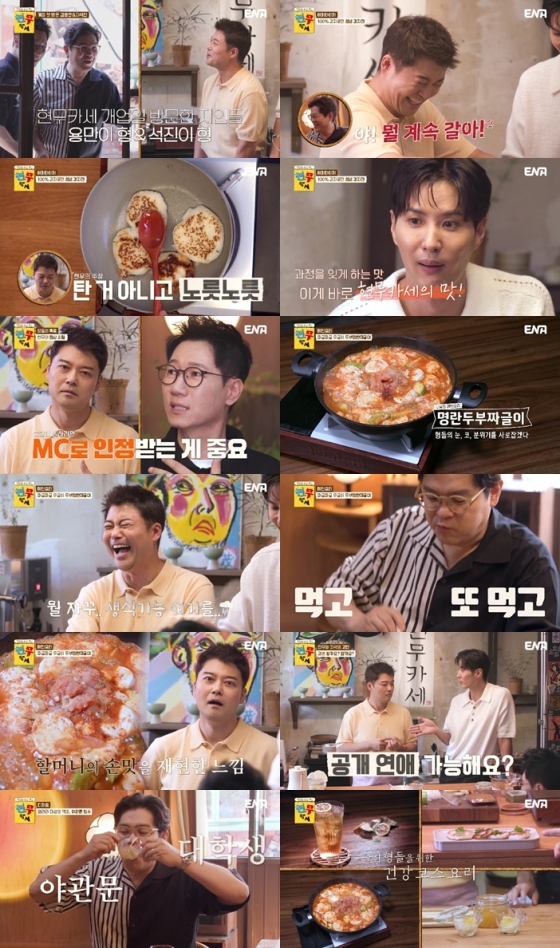 11일 방송된 ENA 오리지널 예능 '현무카세' 첫 회에서는 서울 문래동에 아지트를 오픈한 전현무, 김지석이 절친한 형 김용만, 지석진을 초대해 '형님 맞춤형' 건강 코스 요리를 대접하는 현장이 펼쳐졌다.