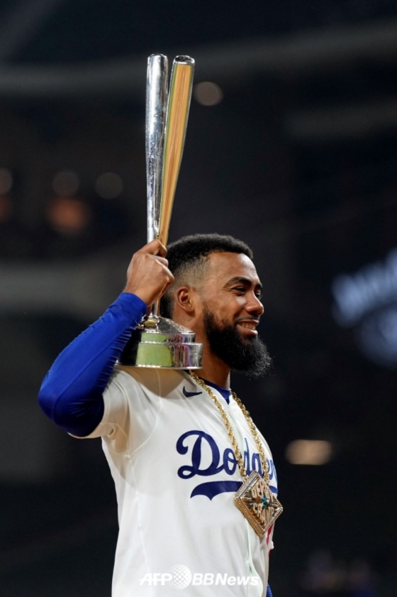LA 다저스의 테오스카 에르난데스(22)가 2024 미국 프로야구 메이저리그(MLB) 올스타전 홈런 더비에서 우승을 차지했다.