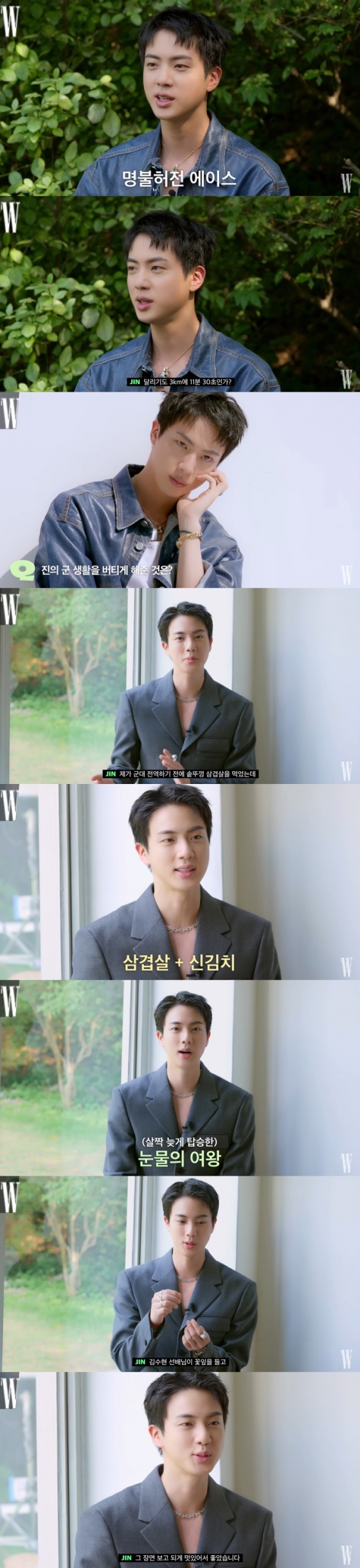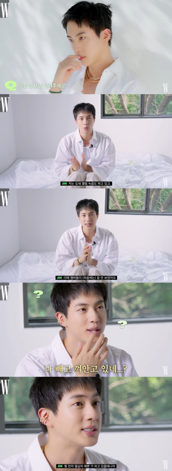 W 코리아 측은 15일 공식 유튜브 채널을 통해 '귀하다 귀해… 군대 이야기하는 방탄소년단 진? 요즘 그의 근황과 관심사에 대해 물었습니다'라는 제목으로 영상을 공개했다.