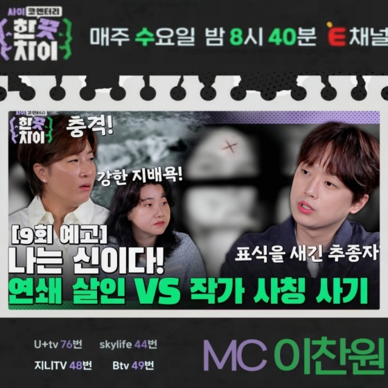 7월 17일 방송하는 E채널 '한 끗 차이'에서는 '연쇄 살인 vs 작가 사칭 사기' 등 역대급 충격적인 끔찍한 이야기가 전개된다.