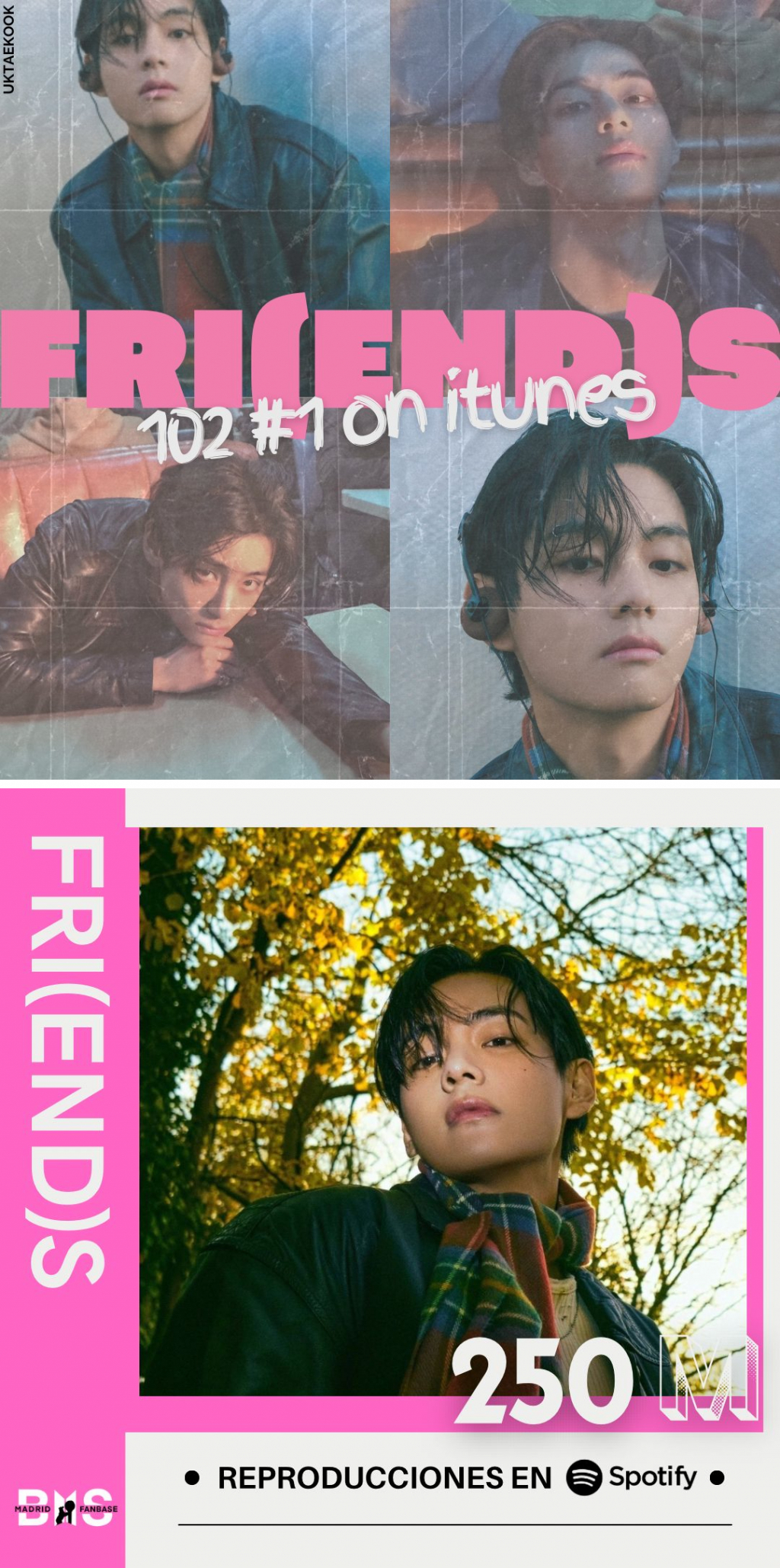 방탄소년단(BTS) 뷔의 '프렌즈'(FRI(END)S)가 스포티파이에서 2억 5000만 스트리밍을 돌파하며 인기를 빛냈다.