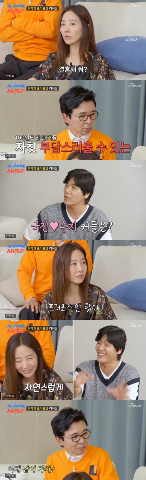 '조선의 사랑꾼'에서 강수지가 남편 김국진으로부터 프러포즈를 받지 못했다고 말했다.