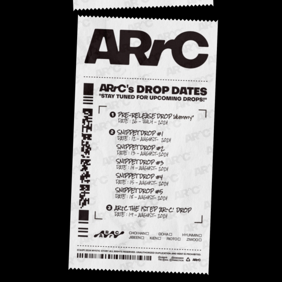 공개된 드롭 데이트는 어패럴 브랜드 콘셉트로 제작된 가운데, 각 프로모션 일정이 결제 내역처럼 표기된 트렌디한 디자인이 인상적이다. 특히, 아크는 정식 데뷔에 앞서 오는 26일 수록곡 'dummy(더미)'를 선발매한다. 이어 앨범에 수록된 각 곡의 힌트를 엿볼 수 있는 'SNIPPET DROP(스니펫 드롭)' 콘텐츠가 순차적으로 공개될 예정이다.