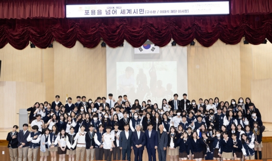 지난 18일 학교 소강당에서 열린 기부금 전달식에는 학생회 간부, 교장, 교감, 선생님들이 참석했으며, 이태석 재단에서는 구수환 감독과 구진성 이태석 리더십 아카데미 대표가 참석했다.