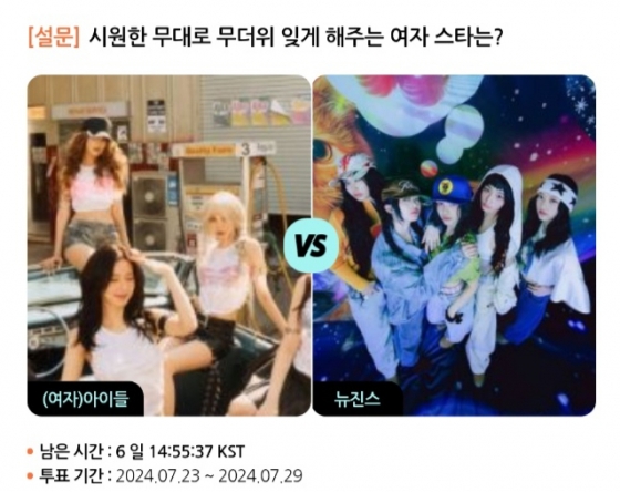 모바일 아티스트 종합 콘텐츠 앱 스타폴(STARPOLL)은 23일부터 29일까지 '시원한 무대로 무더위를 잊게 해주는 여자 스타는?'이라는 주제로 설문 조사를 진행한다.