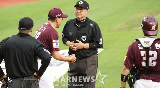 이후 홍원기 키움 감독이 항의에 나섰다. 주자를 막을 목적이 아닌 송구 방향에 따라 자연스럽게 몸을 움직인 것이라는 어필로 보였으나 상황은 바뀌지 않았다. 오히려 심판진은 비디오 판독 이후 항의에 나선 홍원기 감독에 대해 퇴장 명령을 내렸다.