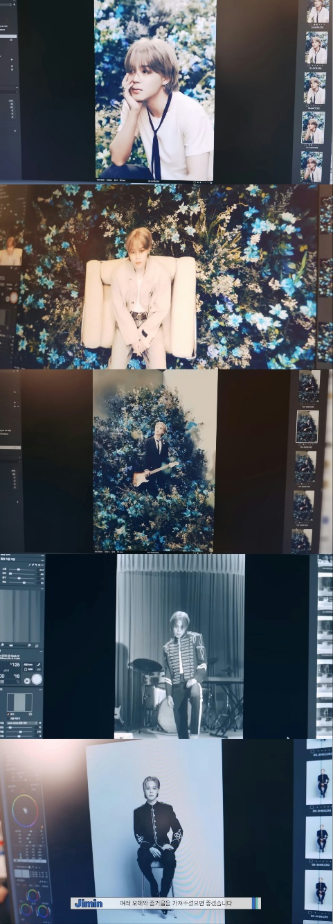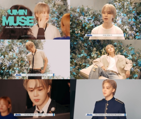 최근 지민의 솔로 2집 포토 촬영 영상이 방탄소년단 유튜브 채널 '방탄TV'에 '지민 (Jimin) 'MUSE' Jaket Shoot Sketch'이라는 제목으로 공개됐다.
