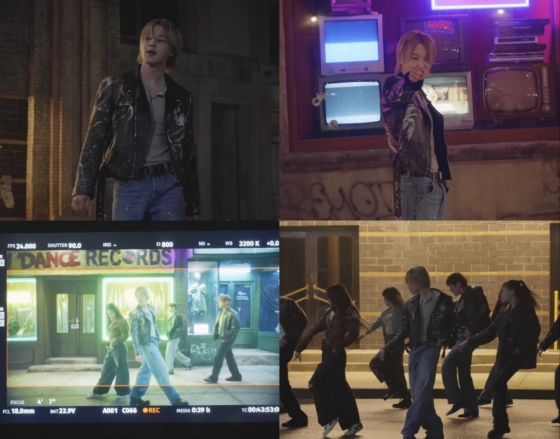 금발의 지민은 가죽 라이더 재킷과 청바지로 90년대 무비 스타를 완벽 재현해 현재 군 복무 중인 현실이 아쉬울 만큼의 빛나는 리즈 미모로 촬영장을 곳곳에 배치된 수록곡 제목의 간판과 가사를 찾아보는 재미를 알려주는 친절함도 잊지 않아 팬들을 설레게 했다.
