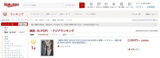 또한 진이 표지 모델인 하퍼스 바자가 프리오더가 열린 일본 라쿠텐 베스트셀러 1위를 차지하는 등 '비주얼킹' 진의 폭발적인 인기를 실감케 했다.
