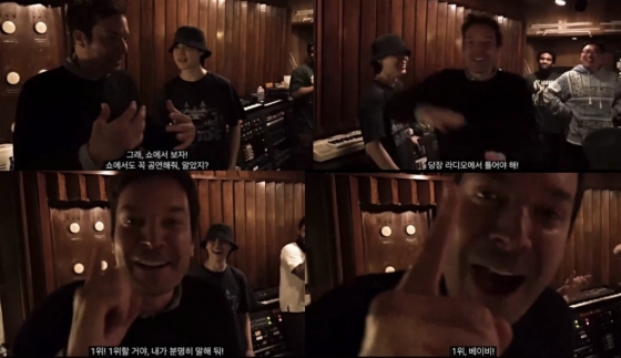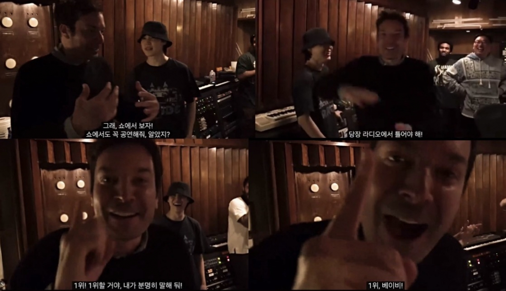 지민이 또다시 작업실을 찾은 날 우연히 미국 유명 진행자 지미 팰런과 마주쳐 막 완성된 '후'를 최초로 들려주게 됐고, 지미는 듣자마자 "당장 라디오에서 틀어야 한다, 분명히 말하지만 1위다. 쇼에서 봐요, 꼭 쇼에서 공연해줘! 홈런이야, 너무 좋아(Killer)"라며 엄청난 극찬을 쏟아냈다.