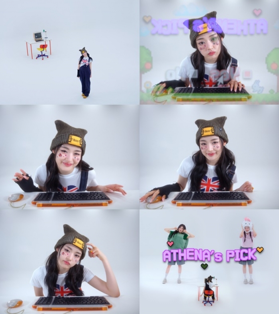 아테나의 트레일러는 미니게임을 진행하는 듯 아기자기한 무드로 구성됐다. 비니와 양갈래 머리, 오버롤 팬츠까지 귀여운 게임 캐릭터 같은 모습으로 등장한 아테나가 'ATHENA's PICK'를 진행하는 과정이 인상적이다.