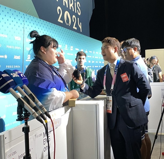 KBS의 '역도 캐스터' 전현무가 '은빛 환호'와 함께 파리올림픽 역도 여자 +81kg 박혜정의 경기 중계를 마무리했다.