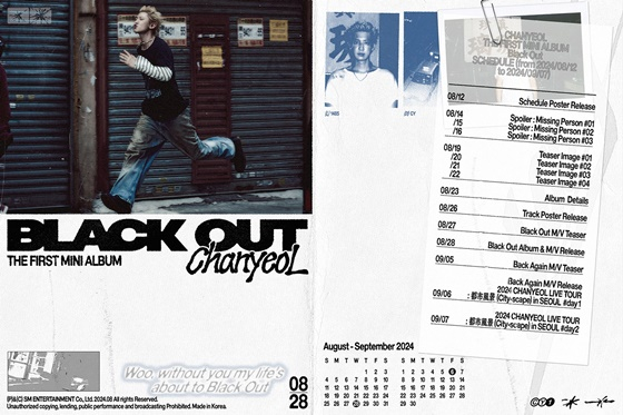 12일 엑소 공식 SNS 계정을 통해 공개된 찬열 첫 번째 미니앨범 '블랙 아웃'(Black Out) 스케줄 포스터는 스포일러 및 티저 이미지, 트랙 포스터, 뮤직비디오 티저 영상 등 앨범 관련 풍성한 콘텐츠 오픈 일정을 담아 눈길을 끌었다.