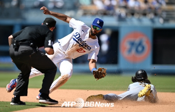 배지환은 팀이 2-4로 뒤진 5회초 2사 주자 없는 상황에서 멀티히트를 완성했다. 여전히 마운드에 서 있는 글래스노우를 상대로 볼카운트 3-1에서 5구째를 공략, 좌전 안타를 기록했다. 이어 2루 도루까지 성공시키며 LA 다저스의 내야를 뒤흔든 배지환이었다. 그러나 이번에는 후속타가 터지지 않으면서 득점에는 실패했다.