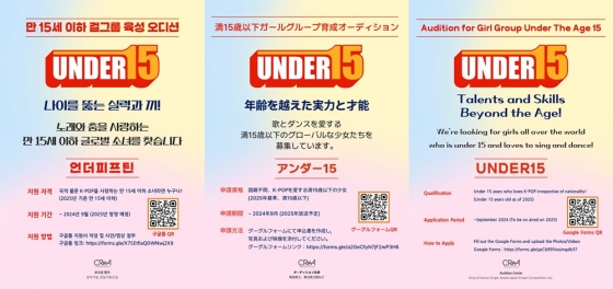 글로벌 최초 만 15세 이하 K-POP 신동 발굴 프로젝트 'UNDER15'의 글로벌 오디션이 폭발적인 관심을 모으고 있다. 전 세계 70여 개국 만 15세 이하 소녀들을 대상으로 진행되는 'UNDER15'에 신청 폭주가 이어지고 있는 것. 지난 6월 태국에서의 예심을 성공리에 마친 제작진은 오는 8월 31일과 9월 1일 K-POP 팬덤의 격전지 일본 도쿄에서 전 세계 글로벌 원석을 구하기 위한 글로벌 예심을 진행한다. 이어 일본 오사카, 중국, 베트남, 필리핀, 인도네시아 등에서도 글로벌 예심을 가동한다.