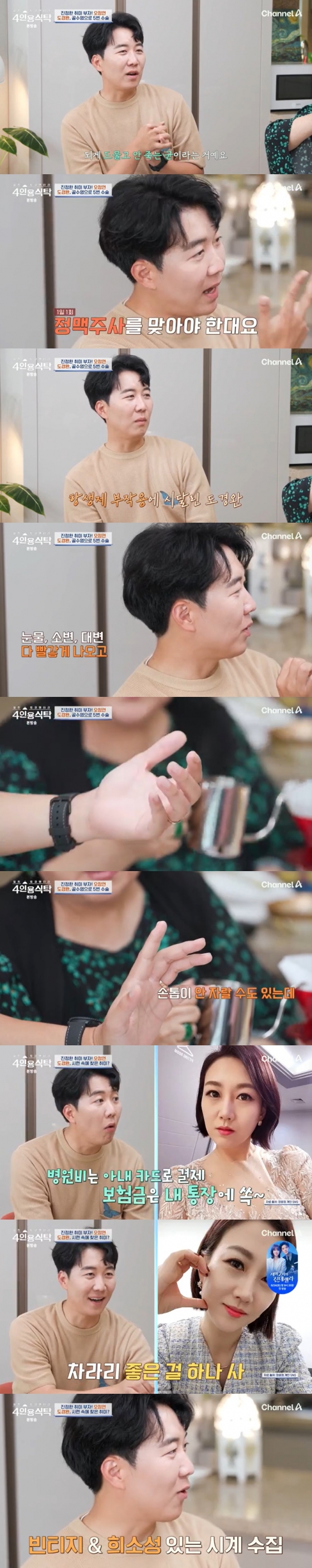 그는 "퇴원 후에 보험금이 300만 원 정도 나왔다. 병원비는 아내 카드로 결제했는데 보험금이 내 통장에 들어와서 백화점에 갔다. 백화점 광고에 손목시계 광고가 있어서 손목시계를 샀다. 그걸 차고서 시계에 대한 관심이 많아졌다. 빈티지, 희소성 있는 시계를 모으게 됐다. 작년 이맘때 퇴원하고 십여 가지의 시계를 모았다"고 했다.