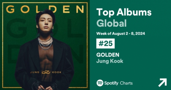 정국의 첫 솔로 앨범 'GOLDEN'은 세계 최대 음원 스트리밍 플랫폼 스포티파이(Spotify)에서 8월 2일~8일 자 '위클리(주간) 톱 앨범 글로벌' 차트 25위를 차지했다.