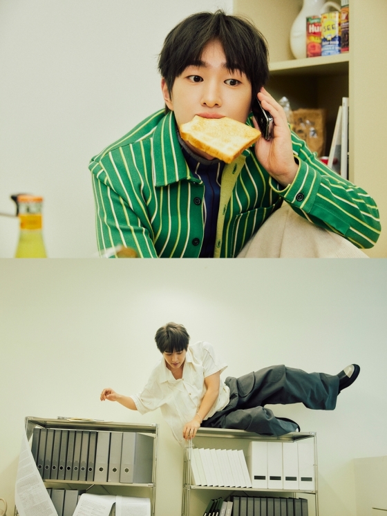 화요일의 부제는 'Focus(집중)'로, 온유는 캐비닛 위에서 포즈를 취하고 있다. 칸칸을 가득 채운 서류 더미에서 짐작할 수 있듯, 온유는 리스너들에게 이제껏 볼 수 없던, 새로운 모습을 보여주기 위해 고도의 집중력을 발휘했다.