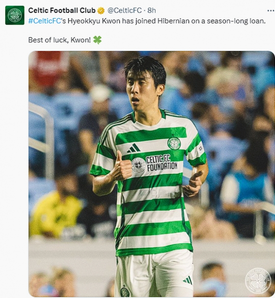 하이버니언은 14일(한국시간) "구단은 수비형 미드필더 권혁규 임대 계약을 발표하게 되어 기쁘다. 2024~2025시즌 동안 하이버니언에서 함께할 것이다"고 공식 발표했다.