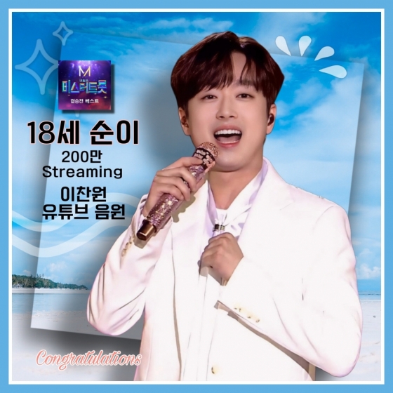 가수 이찬원의 '18세 순이' 음원 영상이 200만뷰를 달성하며 인기를 빛냈다.