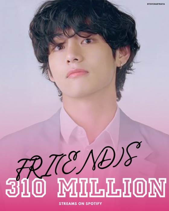 방탄소년단(BTS) 뷔의 '프렌즈'(FRI(END)S)가 스포티파이에서 3억 1000만 스트리밍을 돌파하며 글로벌 인기를 빛냈다.