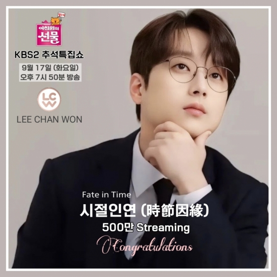 한편 이찬원은 오는 9월 17일 오후 7시 50분 KBS 2 TV 추석특집쇼 '이찬원의 선물' 무대로 시청자를 만난다.