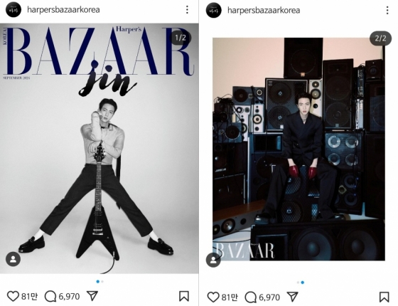 하퍼스 바자 코리아가 공식 인스타그램을 통해 지난 8월 13일 공개한 진의 9월호 커버는 9월 8일 기준 '좋아요' 81만개를 기록했다. 이는 독보적으로 가장 많은 좋아요를 받은 게시물이다.