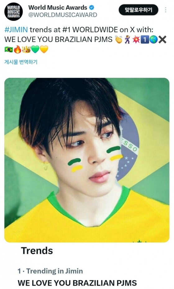 이처럼 지민은 정열의 나라 브라질에서 굳건한 지지와 응원으로 뜨거운 인기를 구가하고 있으며 현지 팬들은 비록 엑스 상에서는 지속되지 못하더라도 또 다른 다양한 경로를 통해 열기를 이어갈 것이라 약속하며 아쉬움을 달랬다.