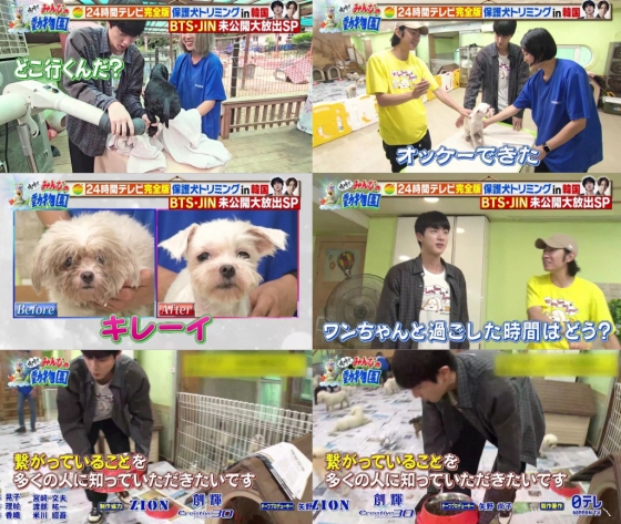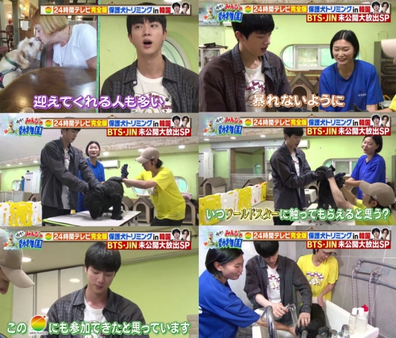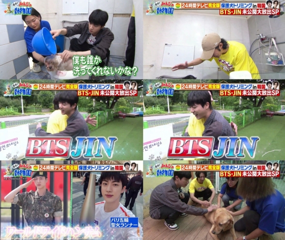 NTV 인기 프로그램들이 참여하는 '24시간 TV'의 '모두의 동물원' 코너에서 '비주얼 킹' 진은 일본의 탑 아이돌이자 국민 아이돌 아라시의 아이바와 함께 유기견 목욕 및 미용 봉사를 했다. 지난 9월 7일에는 진이 출연한 '모두의 동물원' 완전판이 방송됐다.