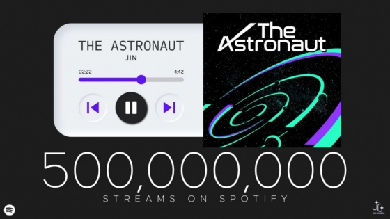 진이 입대를 두 달여 앞두고 공개한 팬들을 위한 선물 같은 곡 '디 애스트로넛'은 9월 10일 세계 최대 음원 플랫폼 스포티파이(Spotify)에서 5억 스트리밍을 돌파했다.