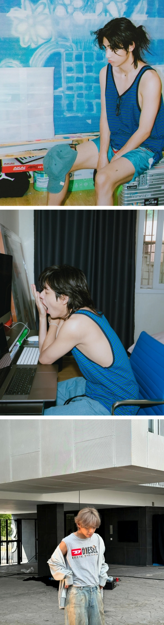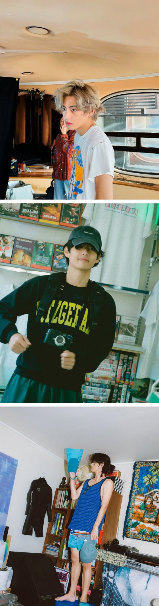 민소매 티셔츠와 반바지를 입고 긴 헤어스타일을 한 사진에서는 여름날의 싱그러운 감성이 묻어났다. 뷔는 오리발을 손에 끼거나 하품하는 등 장난스러운 모습으로 소년미 가득한 매력을 드러냈다. 손 하트로 팬들에게 사랑을 표현하는 것도 잊지 않았다.