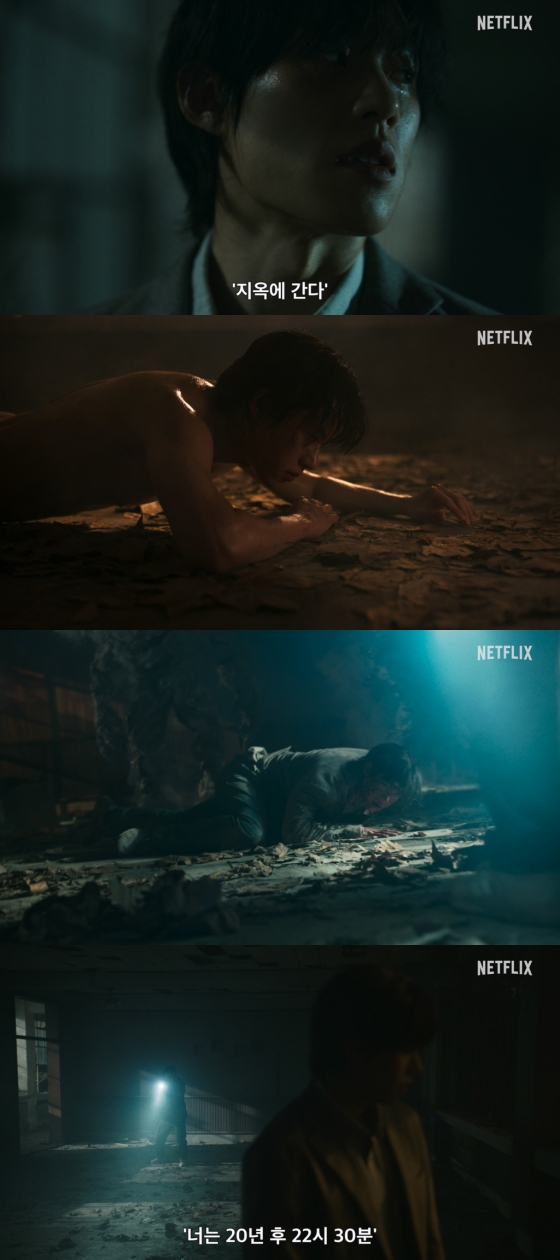 시연 이후 깨어나지만 다시 그에게 달려오는 지옥 사자와 불길 속에서 울부짖는 '정진수', 그리고 서서히 형태를 갖춰가며 부활하고 있는 모습 등은 앞으로 펼쳐질 일들에 대한 궁금증을 증폭시킨다. 지옥행 고지와 시연이 만연해진 더욱 혼란스러운 세상에서 갑작스레 나타난 부활자의 등장으로 새로운 전개를 예고하는 '지옥' 시즌2는 한층 더 깊어진 세계관과 다채로운 캐릭터들로 다시 한번 전 세계 시청자들을 사로잡을 예정이다.