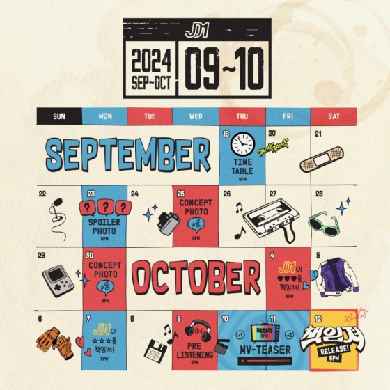 이미지에 따르면 JD1은 오는 23일 스포일러 포토 공개를 시작으로 발매일인 10월 12일까지 콘셉트 포토, 프리리스닝, 뮤비 티저 등을 비롯한 다채로운 사전 콘텐츠를 공개하여 컴백 기대감을 고조시킬 예정이다.